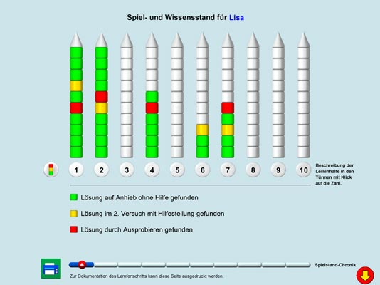 Ein Spieldurchgang besteht aus 10 Spielen, die insgesamt ca. 1,5 Stunden dauern. Zwischen den Übungen kann jederzeit gewechselt, das gesamte Spiel kann jederzeit unterbrochen und an derselben Stelle fortgesetzt werden (der Spielstand wird gespeichert). Die Spieldauer ist auf das Vorschulalter abgestimmt, so dass das Kind die Übungen in einem überschaubaren Zeitraum bewältigen kann und ein Erfolgserlebnis hat.